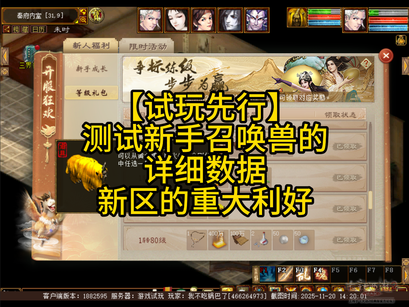 【试玩先行】测试新手召唤兽的详细数据,新区的重大利好!