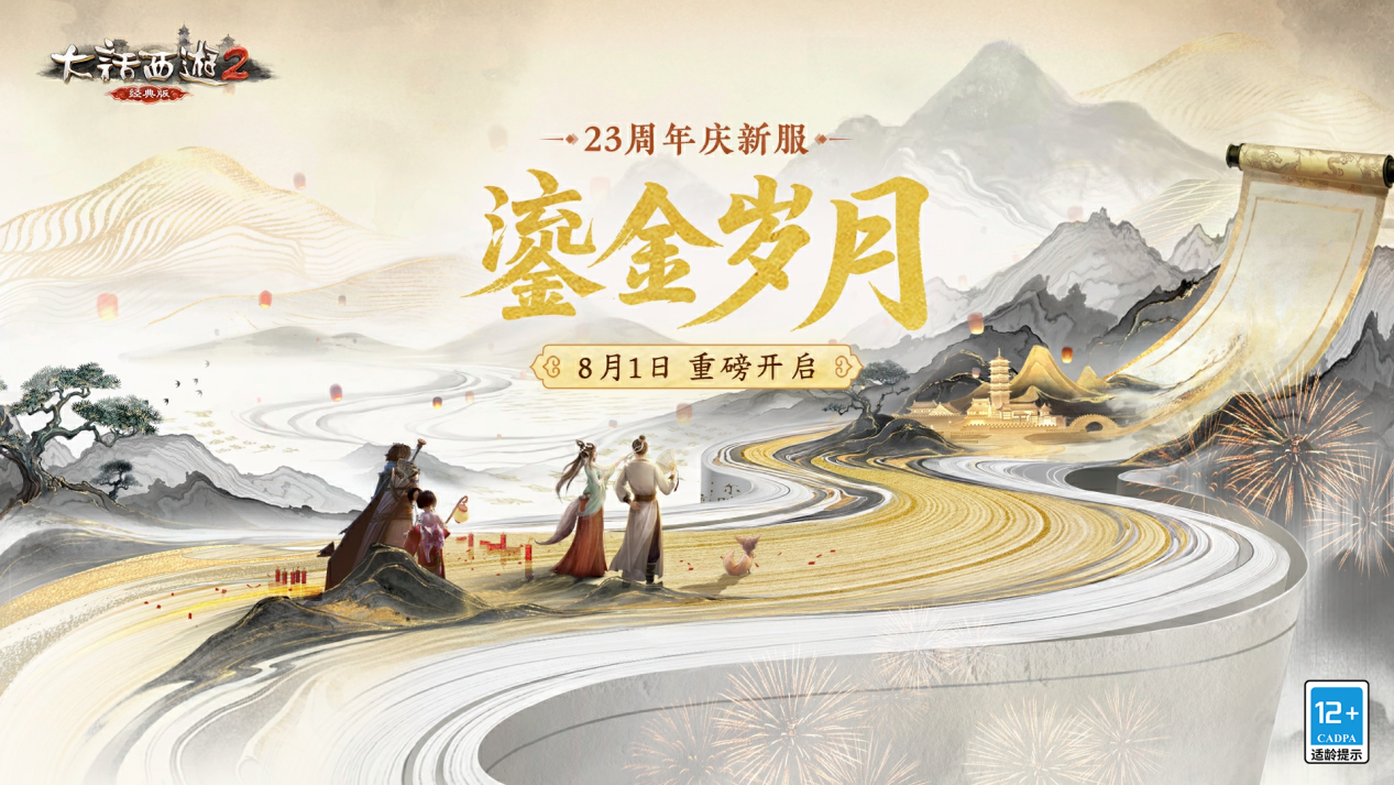 8月1日(周五)中午12:00,《大话西游2经典版》开启周年庆新服【鎏金岁月】。7月28日(下周一)12:00起,侠士们便能够进入游戏,在新服中预约创建角色。