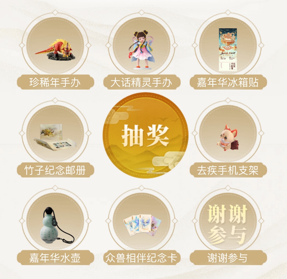 福利日到来前,扫码前往“大话2小助手”小程序,提前完成相应任务获取积分,8月15日晚20:00,就能使用积分抽取珍稀年手办、大话精灵手办、嘉年华水壶等精美周边!