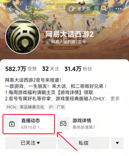 第二步:点击官号主页“直播动态”,即可完成预约,直播不迷路!