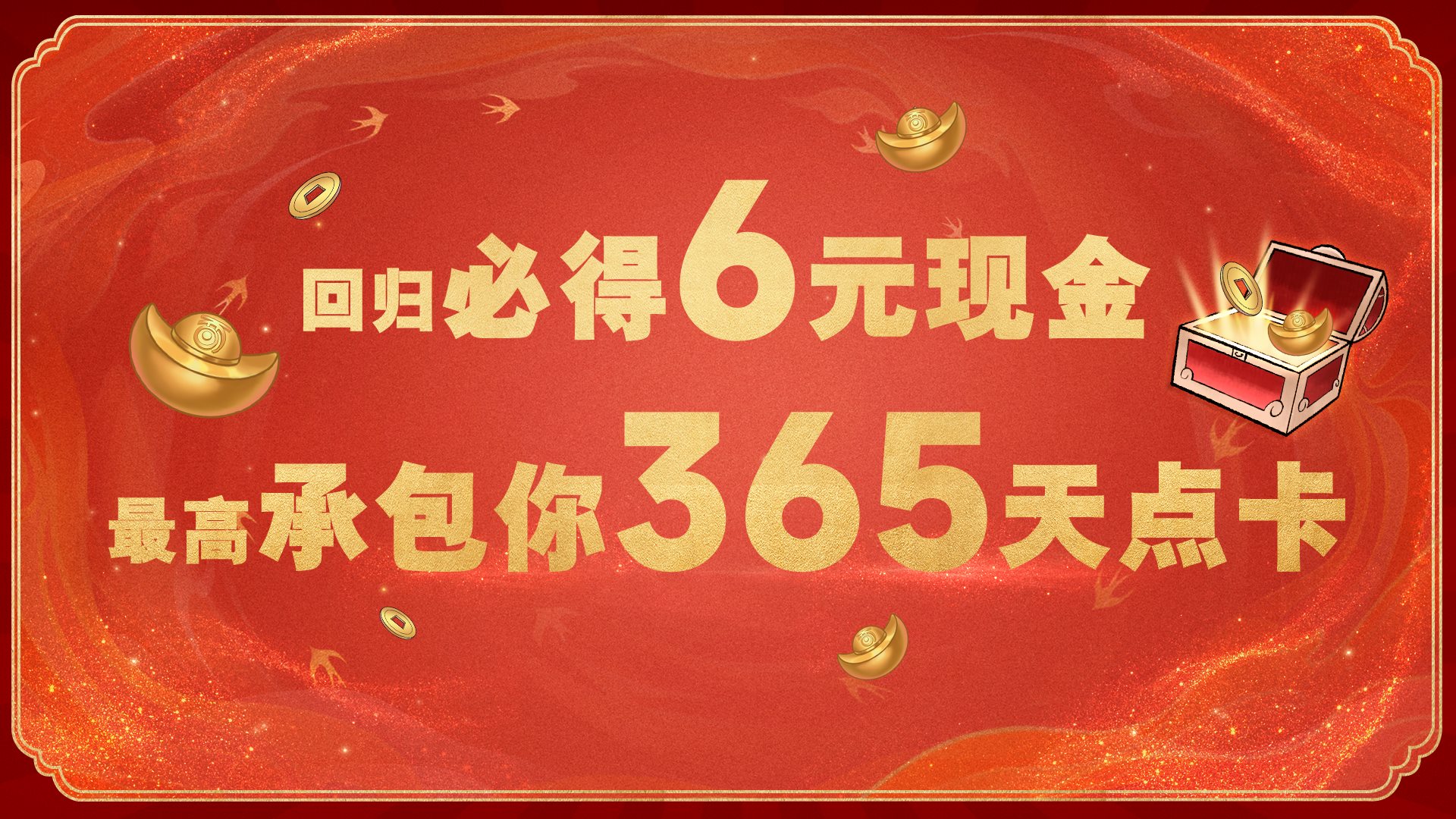 周年庆回流活动将在本周四率先上线 老友回归必领6元现金 参与活动更可是最高赢取一年点卡