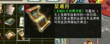 3.当一轮五个任务全部完成后,可使用道具【星遁符】快速返回侍瑞仙女处。