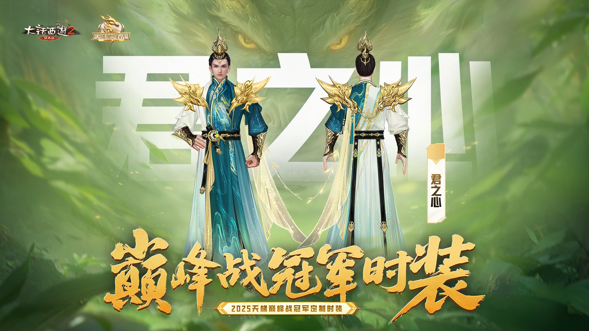 一念山林啸,一念揽苍穹!2025年天梯巅峰战年度冠军时装“君之心”将在本周维护后正式上架多宝阁,9月25日8:00至10月8日23:59上新期间可享专属9折优惠,购买同系列外观可享受2件8.8折,3件8.5折,购买全套外观(发饰、衣服、披风)可立省456仙玉,收集齐全套“君之心”永久外观(同性别发饰、衣服、披风)将额外附赠冠军专属永久徽章!啸绝苍穹,君临天下!