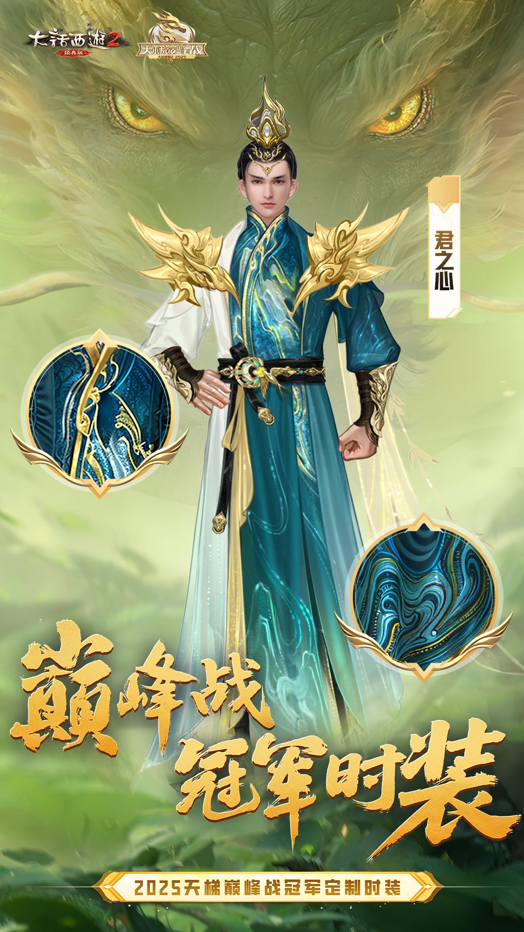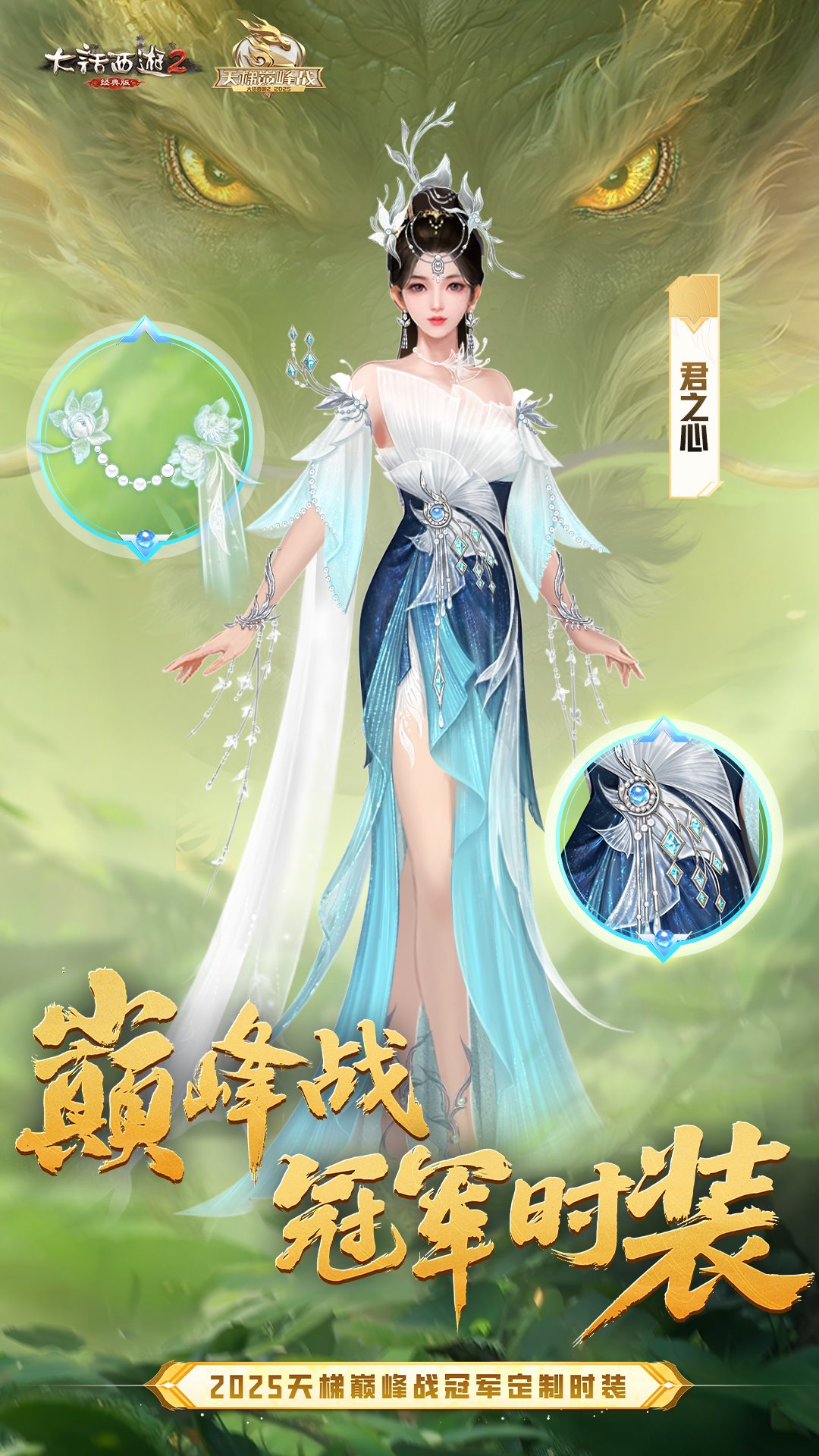 啸绝苍穹,君临天下!再次恭喜红颜知己服务器“君之心”战队,在2025年天梯巅峰年度赛上英勇夺冠。喜欢这套定制时装的少侠可以维护后前往多宝阁选购!