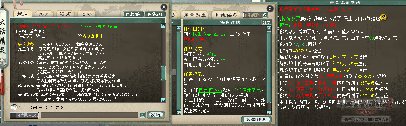 帮战和侠骨寻宝聊天框没有了,不是维护了吗
