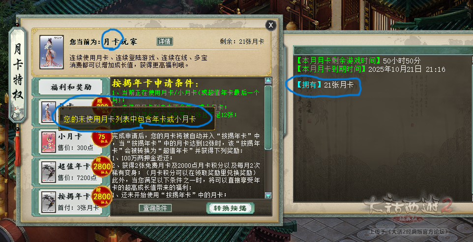 关于月卡和年卡的疑问,请版主和水友帮助解答一下,谢谢