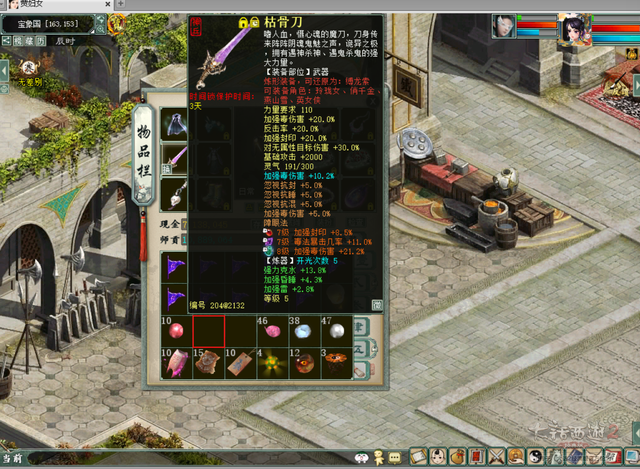 看来妇女在游戏中经历了一次有趣的事件,成功将神兵炼形转回成英女侠。 游戏中的神兵和装备通常会影响玩家的战斗能力,而附加毒属性和冰属性可以为角色带来额外的战斗优势。如果这把神兵刀适合您的英女侠角色,并且在游戏中表现出色,那么您肯定会在游戏中有很多乐趣。 继续享受游戏,并尽情探索您的英女侠角色吧! |