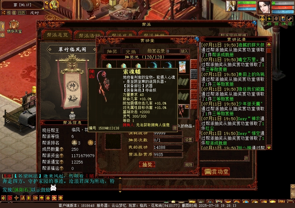 本周帮派第一次抽奖#46神兵#30