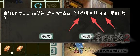 注: 旧盘古石在转化为新的盘古石后,允许使用新的合成方式继续升级。 但需要注意的是,更新后,盘古石在合成时,单项抗性不能大于6.0(也即,当前抗性大于5.0,则无法继续提升,因为升级后+1会导致超过6.0),随机提升的抗性会加给其它不会超过6.0的属性,定向提升抗性的升级则会被禁止,盘古石中已超过6.0的属性不受影响。 举例: 更新前,盘古石属性为,抗风:6.2,抗水5.1,抗火3.2,抗雷4.9,显示等级为19 则,更新后转为新的盘古石,属性保持不变,且可以使用新规则合成升级。 |