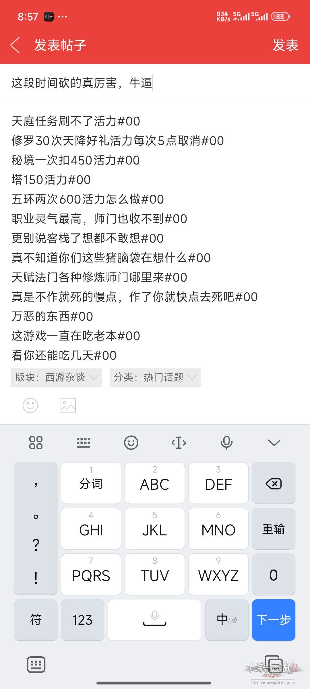 我已经准备放弃了,每天上一小会,什么时候活力够了我就做全部,不够就不做了,少在线,多玩点别的,慢慢的就不想玩了![]() |
