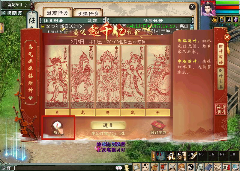 【喜气洋洋接财神】——选择生效组合,正月初五赢千亿大话币