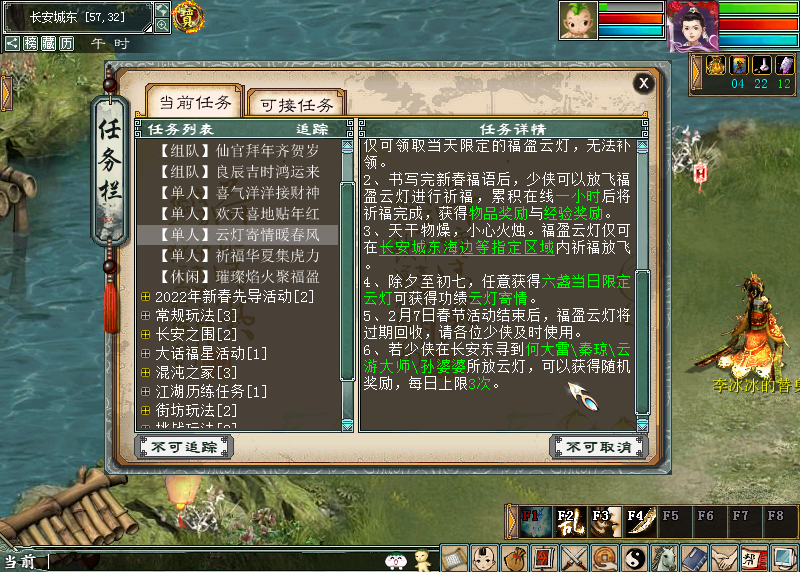 【云灯寄情暖春凤】——从除夕开始,每天一个云灯任务,跑图+长安东海边点灯。给功绩值