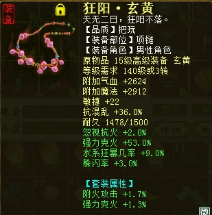 点评: 这个项链作为神器,主要是各项属性都是接近满值,很适合中高敏仙使用。 底子的数值都是满值,炼化的克水差8点满,狂暴差2点满,灵性差2点。