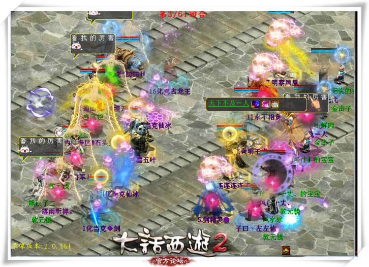 紧接着两魔相继起盘, 爱马仕的年兽直接 子虚隐身了 吾心无忧,保证火力的输出 左左佑一个大冰封印五个单位,其中一个为 石头蛋蛋队的男人,这一下算是为队友省去了被控制的麻烦  ,可旁边的 大将军不乐意了,一个大忘出去稳妥了忘住了 顶风尿十丈和在场的四个召唤兽 爱马仕霄汉出对面的隐身单位, 石头蛋蛋倒地。 吾心无忧一个大秒,带走凤凰,剑精灵和年兽触发 涅槃。