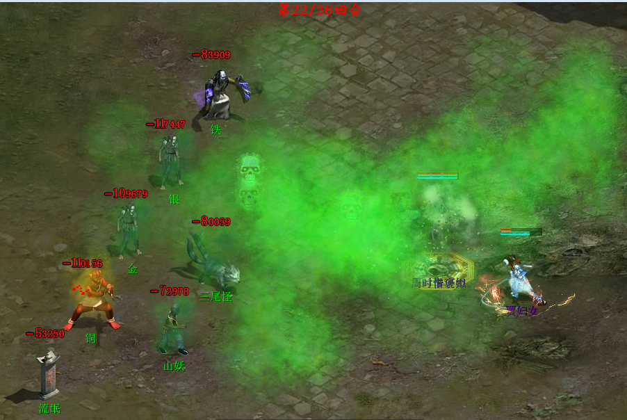 第22回合,万毒攻心命中7个单位,此消彼长失效,夜叉伤害降为110156点,金鬼伤害降为109679点;