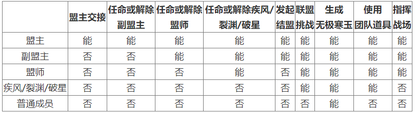 异火燎原联盟战将做如下调整,快来看看有哪些注意的事情吧: 1、删除联盟帮派转移功能; 2、联盟职位权限调整优化如下;