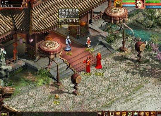 二十一年来,不知有多少妖王被收服于四圣庄,也不知有多少绝世神兵诞生在此,总之时至如今,这里早已成为了经典传说之地,那么就今天晚上吧,兄弟们不妨上线感受一把,看看谁能率先获得小黄鞋? 最后一个风水圣地,相信有很多兄弟还不知道吧,那就是——长安芙蓉园! 对,就是月老见证新人拜天地的地方,如果说大话中有一个地点是受祝福次数最多的话,那一定就非长安芙蓉园莫属了。多年来在此拜堂成亲、成就一段美好姻缘的大话情侣数不胜数,而前来祝贺的亲朋好友数量更是瀚如烟海,并且大家都是带着向往美好、祝福美好之心而来的,此地气运想不旺都难啊!